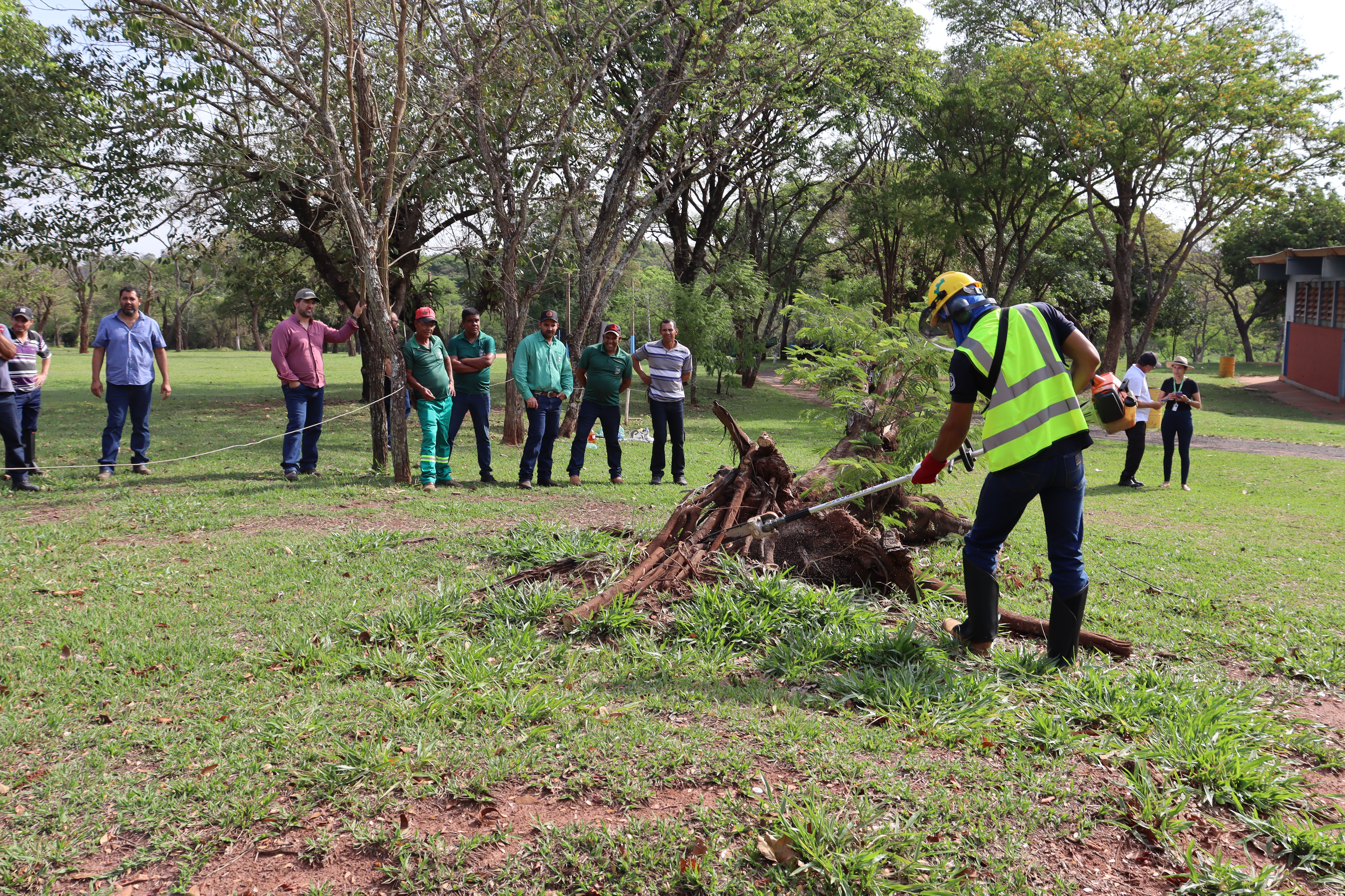 A capacitação teve como objetivo conscientizar e treinar os participantes sobre o uso seguro de motosserras e motopodas, conforme as diretrizes da Norma Regulamentadora nº 12 (NR-12), que trata da segurança no trabalho com máquinas e equipamentos. Durante o curso, foram abordados aspectos como riscos, técnicas de manejo, postura corporal e uso correto de Equipamentos de Proteção Individual (EPIs), visando prevenir acidentes e doenças ocupacionais.
