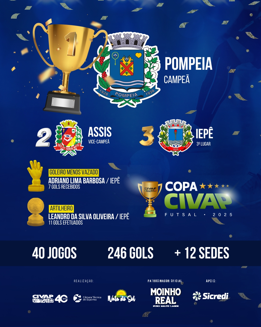 Com o apoio da Sicredi, e patrocínio da Moinho Real, a competição foi um grande sucesso e incentivo ao esporte regional, promovendo integração entre municípios, valorização de atletas locais e momentos inesquecíveis para os torcedores.